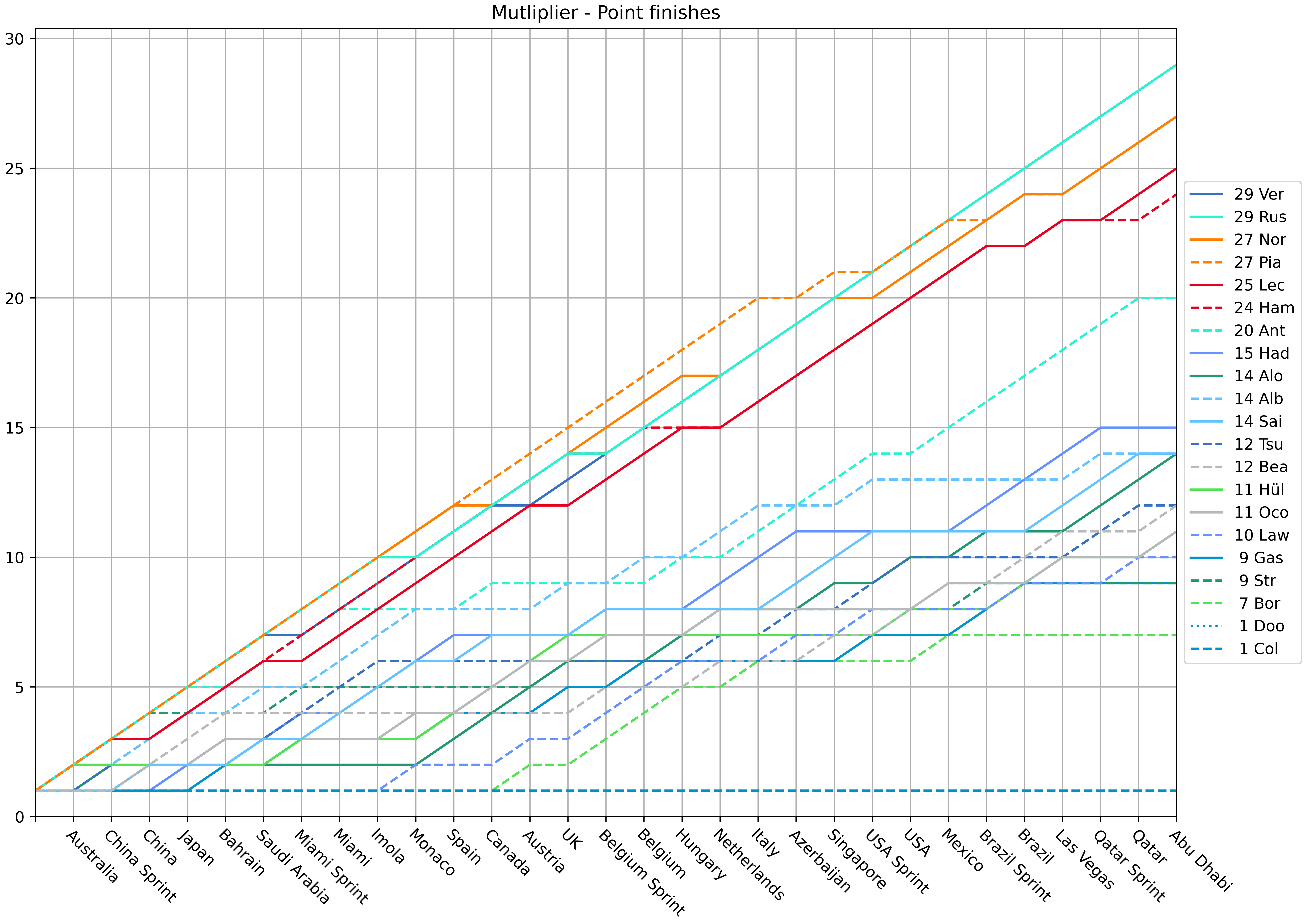 - +1 for the Multiplier for each Point finish