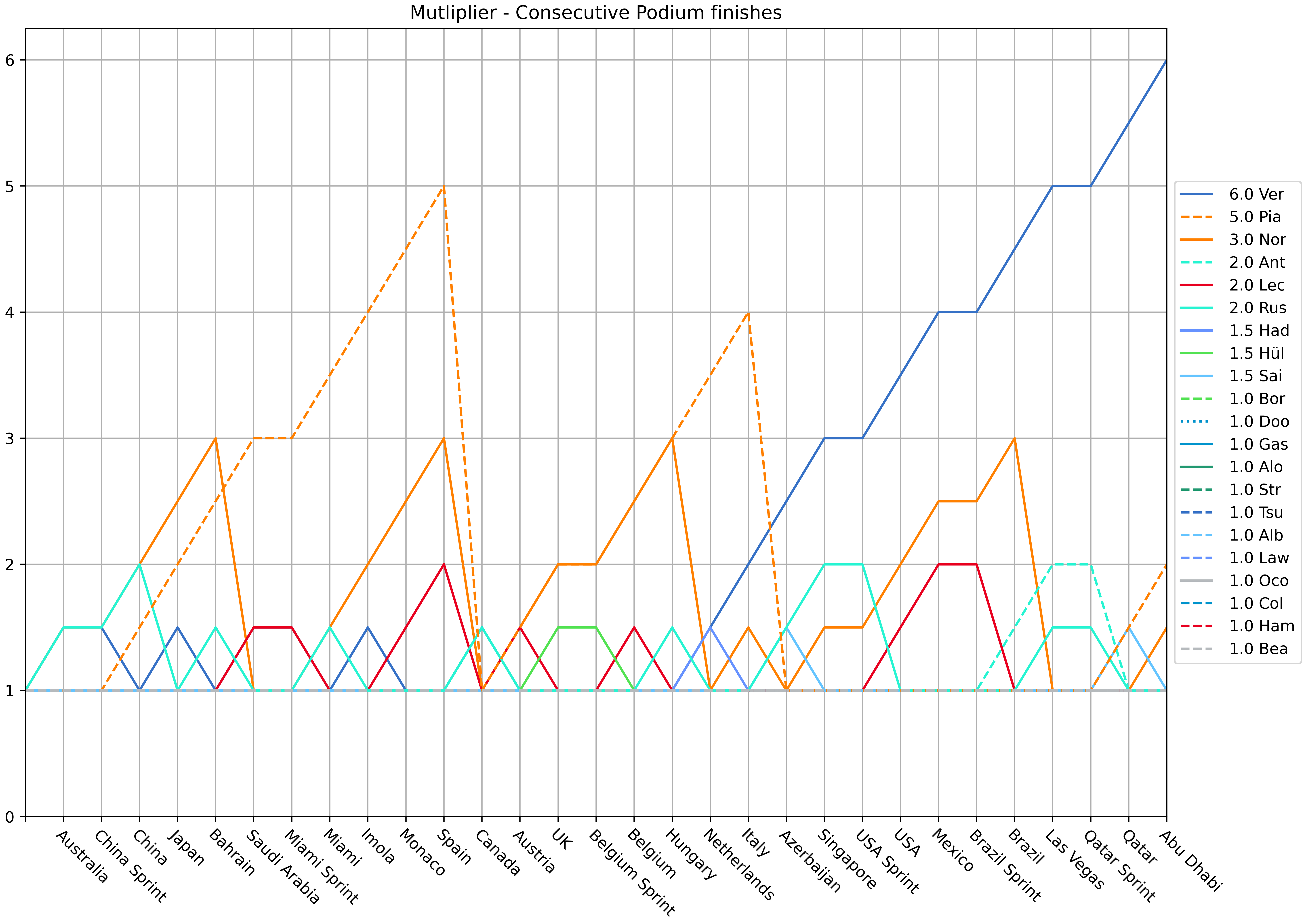 - +0.5 for each consecutive Podium finish